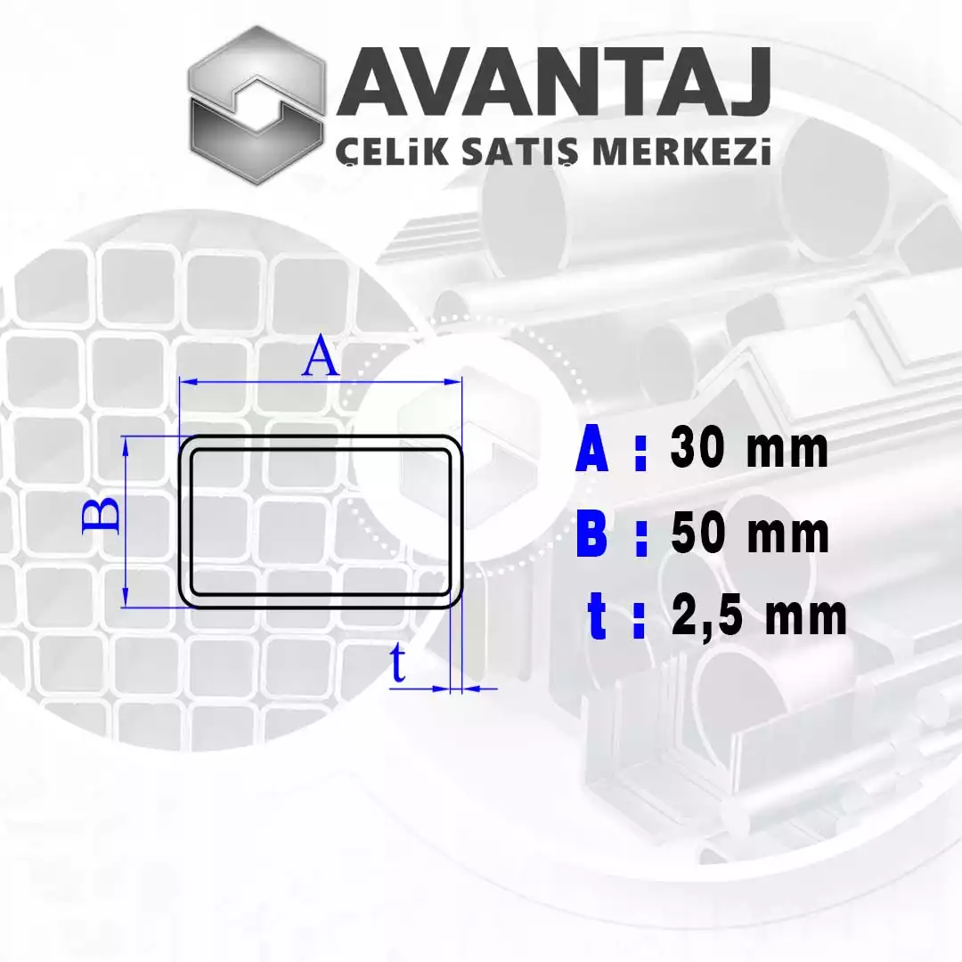 - 30x50x2,5 mm profilin bir adet Ağırlığı 17,58 Kg / Adet' tir.