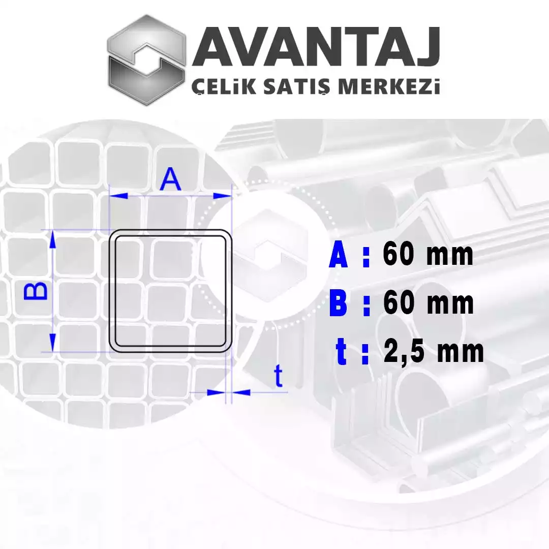 - 60x60x2,5 mm Kutu Profilin bir adet boyu 6 metredir.